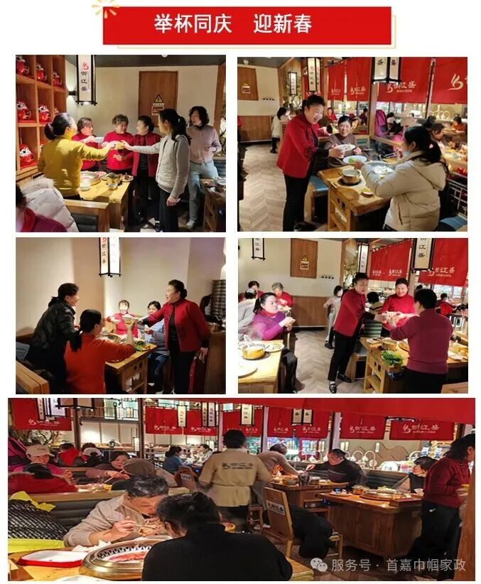 忙碌了一年,大家围坐在一起,举杯共祝美好愿望,一边品尝品种丰富的美食、一边拉拉家常,现场氛围热烈且温馨。自助餐结束后,参加活动的服务员们到各门店领取过年物资,这一项一年一度的传统项目,首嘉巾帼家政公司坚持了二十多年,公司用实际行动和福利感谢一直陪伴我们发展至今的服务员们。